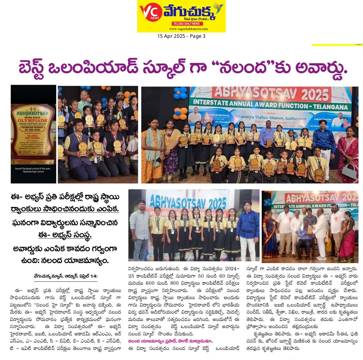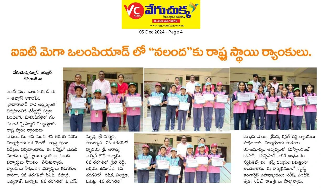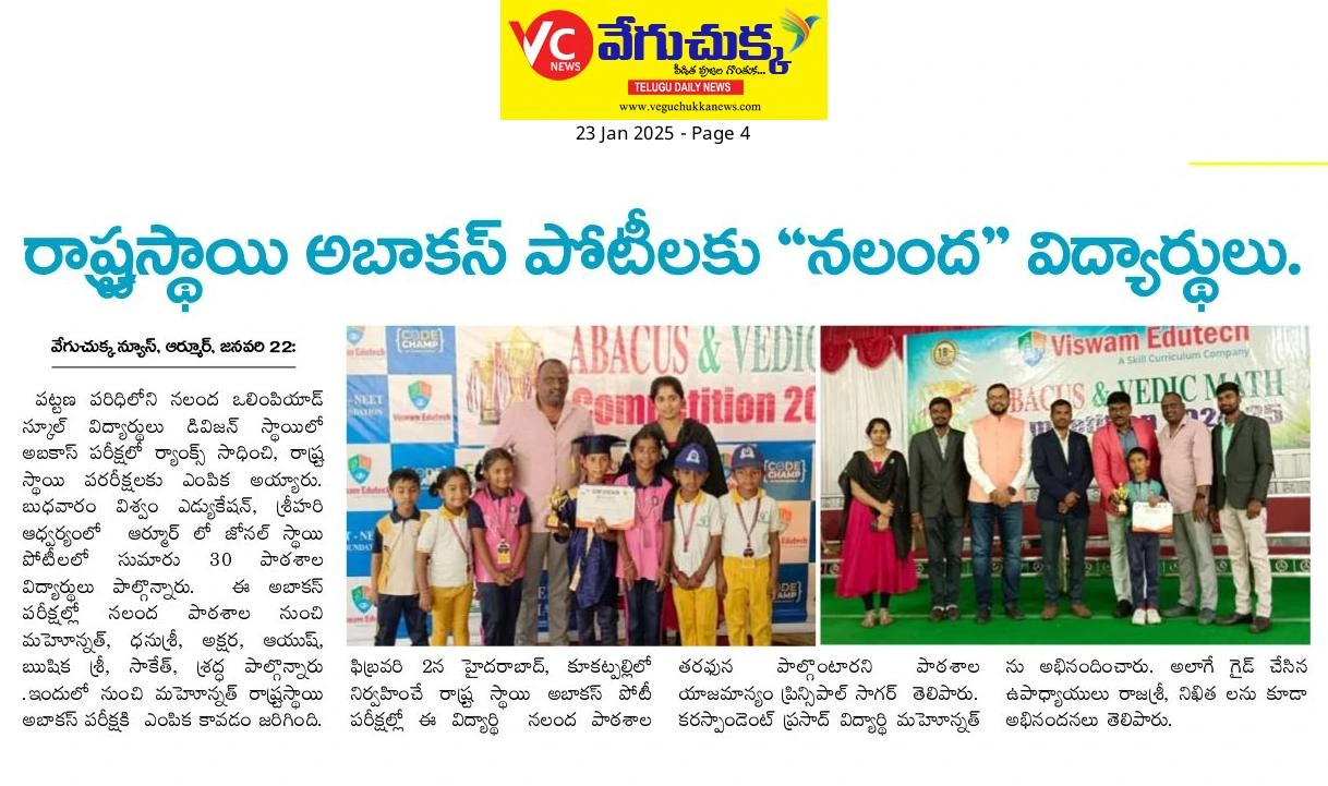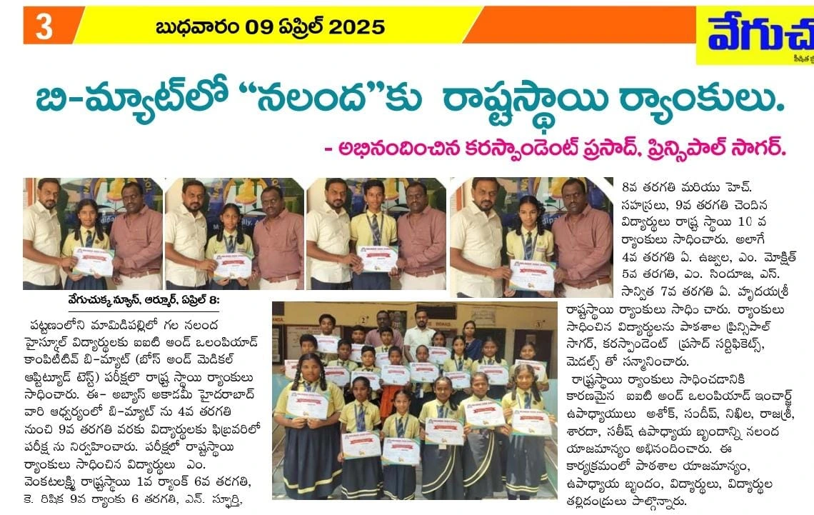 Recognized as one of the top schools in Armoor, Nalanda High School continues to make headlines with outstanding achievements, student success stories, and community impact. Explore our proud moments featured in the press.